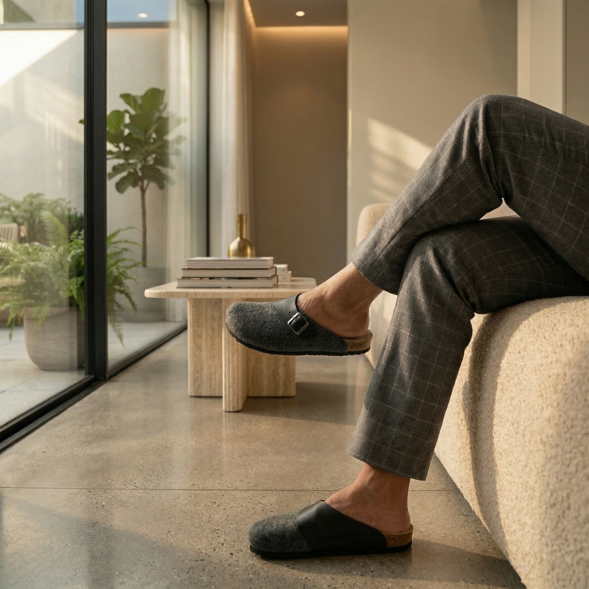 La boucle ajustable assure un maintien parfait, tandis que la semelle EVA, légère, associée au liège et à la mousse, garantit un confort optimal et garde vos pieds au chaud toute la journée.