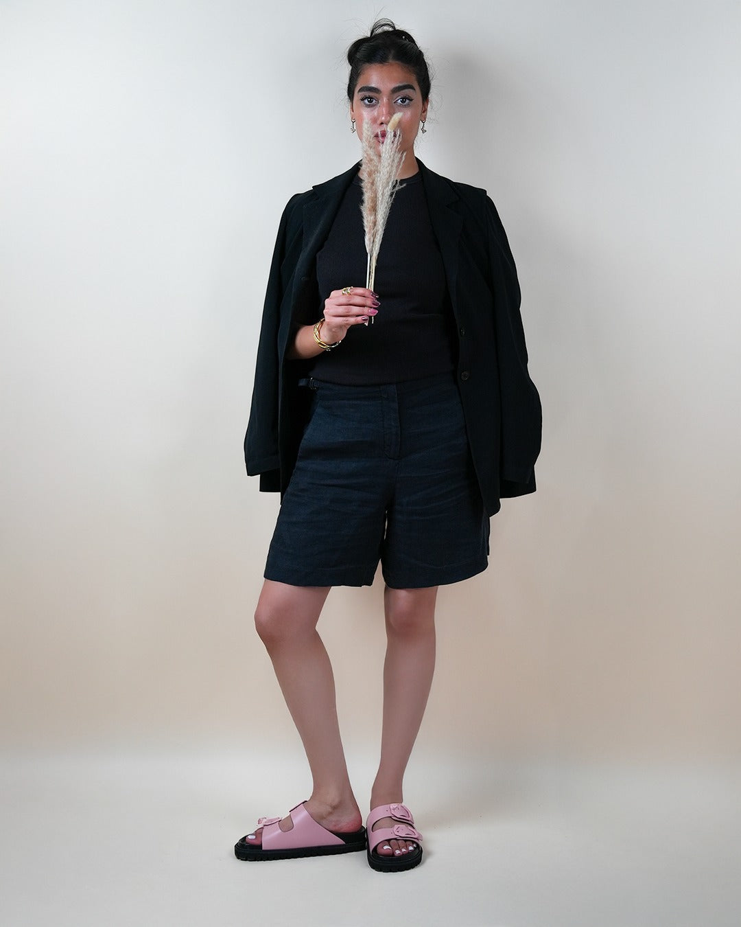 Sandale en cuir rose avec semelle anatomique. Ajustable grâce à notre boucle en G exclusive GENUINS. Le cuir est certifié par des fournisseurs du Leather Working Group (LWG) avec statut Or. Conçue et fabriquée dans nos usines en Espagne.